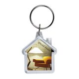 Porta-chaves CR-Y, com formato casa. Personalizado com inserção de papel em 2 faces e tampa em acrílico.