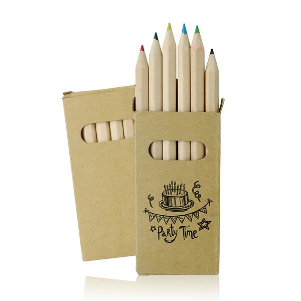 Conjunto de 6 lápis de cor. Um conjunto de lápis de cor, com seis cores diferentes, para dar asas à sua imaginação. Numa caixa de cartão com janela e com boa área de gravação.