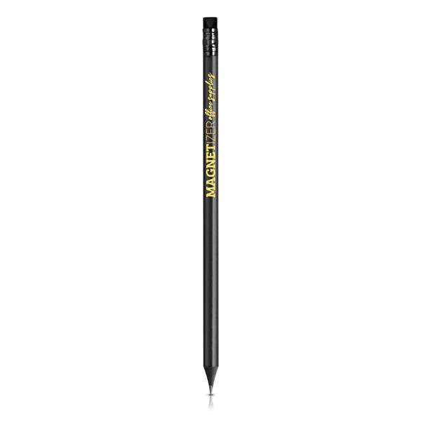 Lápis de carvão, preto, com borracha. Lápis monocromático, com um toque de elegância e exclusividade. Personalize-o e deixe a sua marca escrever as histórias das vidas por onde passar.