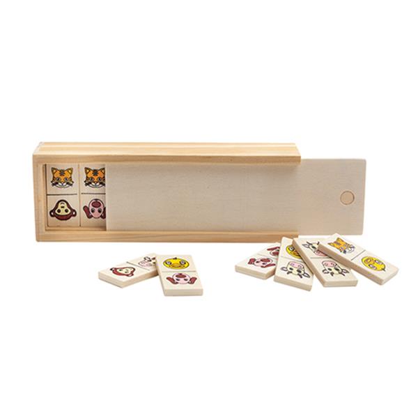 Dominó infantil em madeira. Nada melhor que trazer às nossas crianças os jogos do antigamente. Um jogo estimulante como o dominó, agora em versão infantil. As peças apresentam figuras de animais. Composto por 28 peças de madeira e uma caixa de madeira com ótima área de gravação. Inove mantendo a tradição.